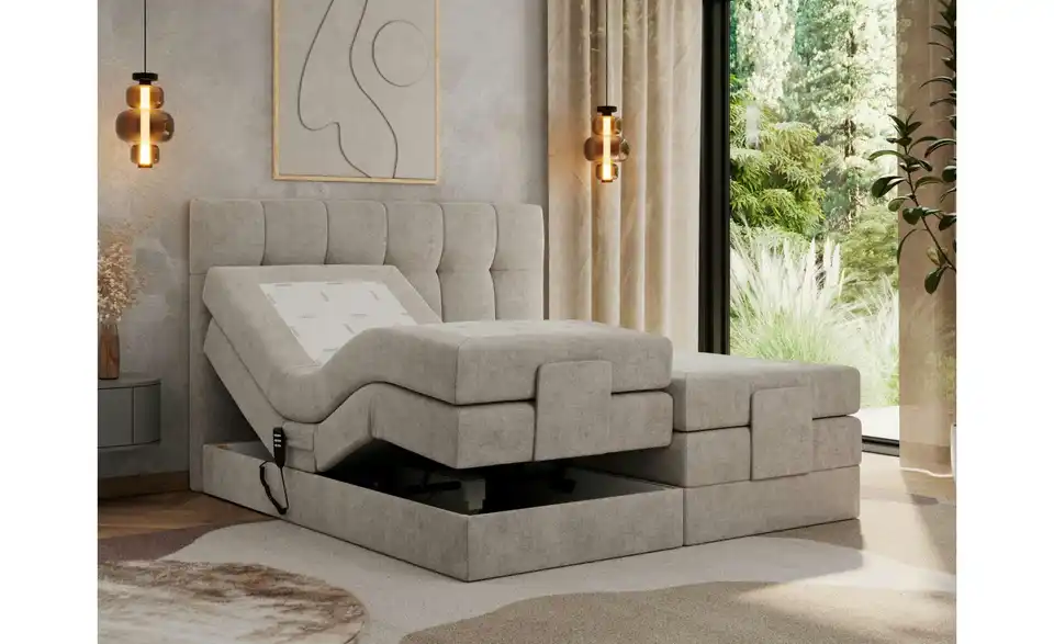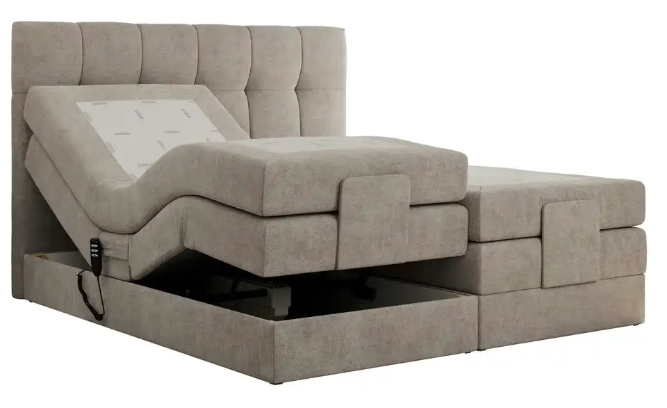 - Lieferumfang / mitgeliefertes ZubehörBeiges Motor-Boxspringbett mit Bettkasten 140x200 cm