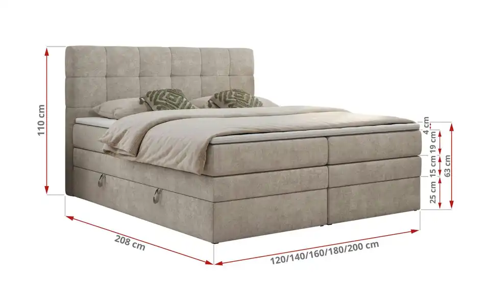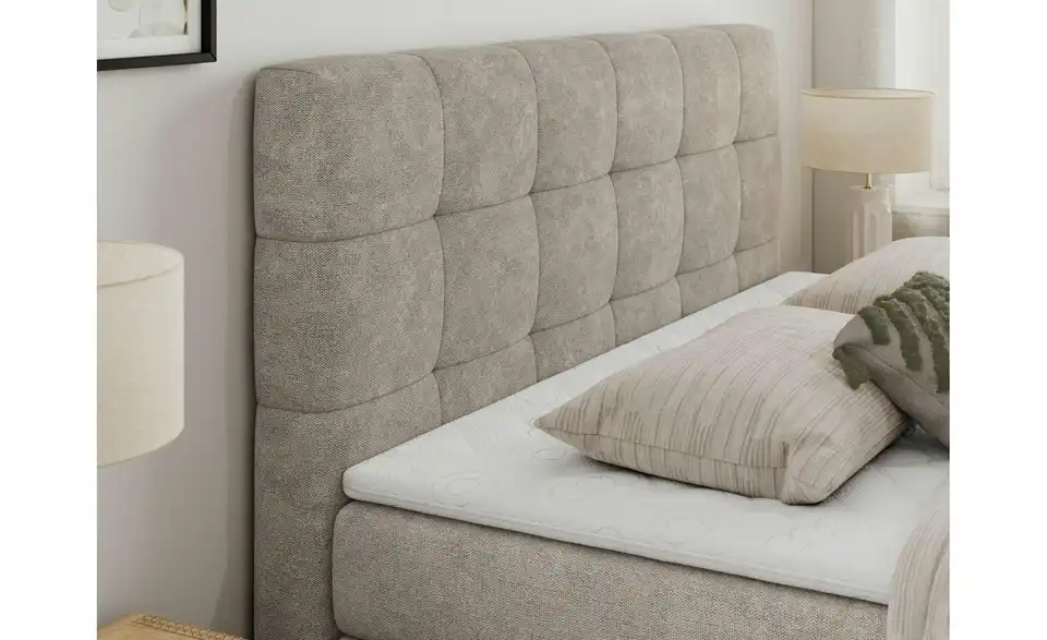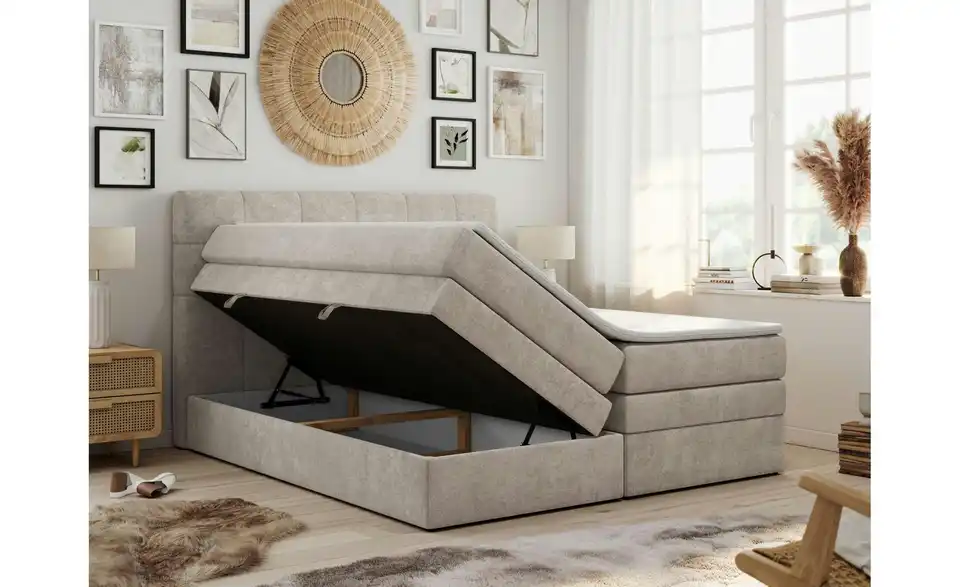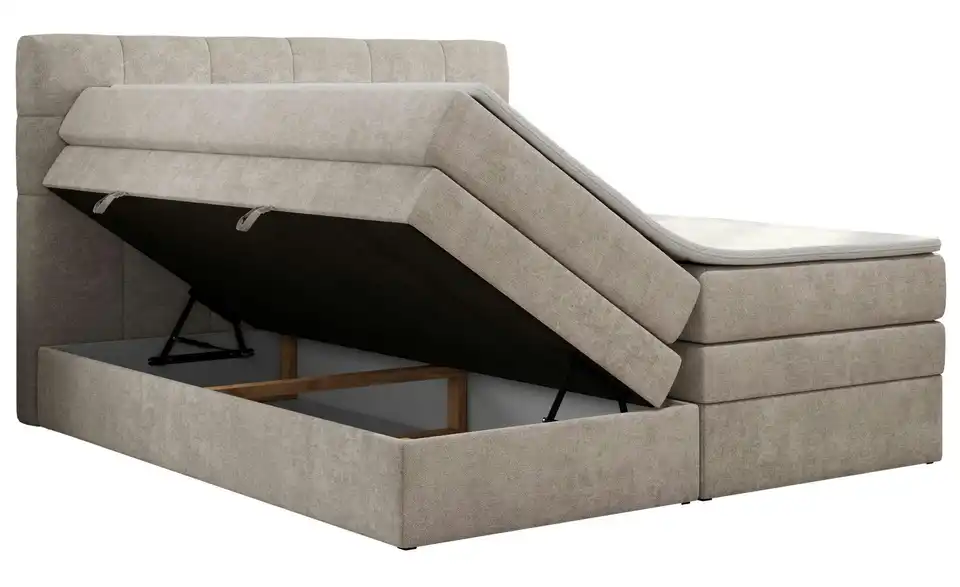 - Lieferumfang / mitgeliefertes ZubehörBeiges Boxspringbett mit Bettkasten 160x200 cm
