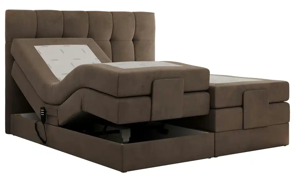 - Lieferumfang / mitgeliefertes ZubehörBronzefarbenes Motor-Boxspringbett mit Bettkasten 160x200 cm
