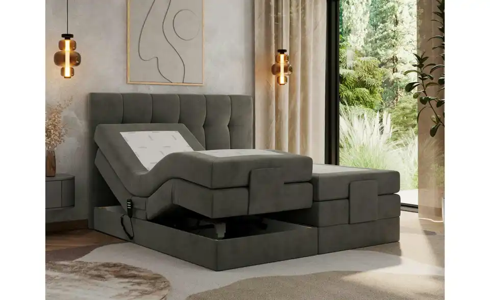- Lieferumfang / mitgeliefertes ZubehörBasaltgraues Motor-Boxspringbett mit Bettkasten 140x200 cm