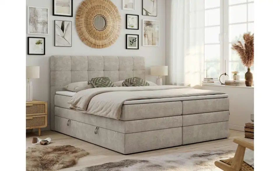 - Lieferumfang / mitgeliefertes ZubehörBeiges Boxspringbett mit Bettkasten 160x200 cm