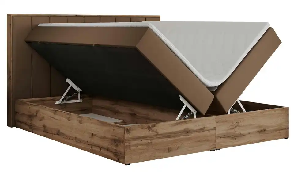 - Lieferumfang / mitgeliefertes ZubehörBraunes Polsterbett mit Bettkasten 180x200 cm
