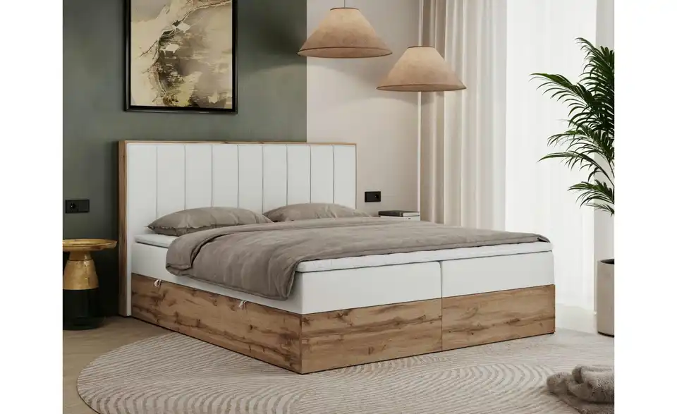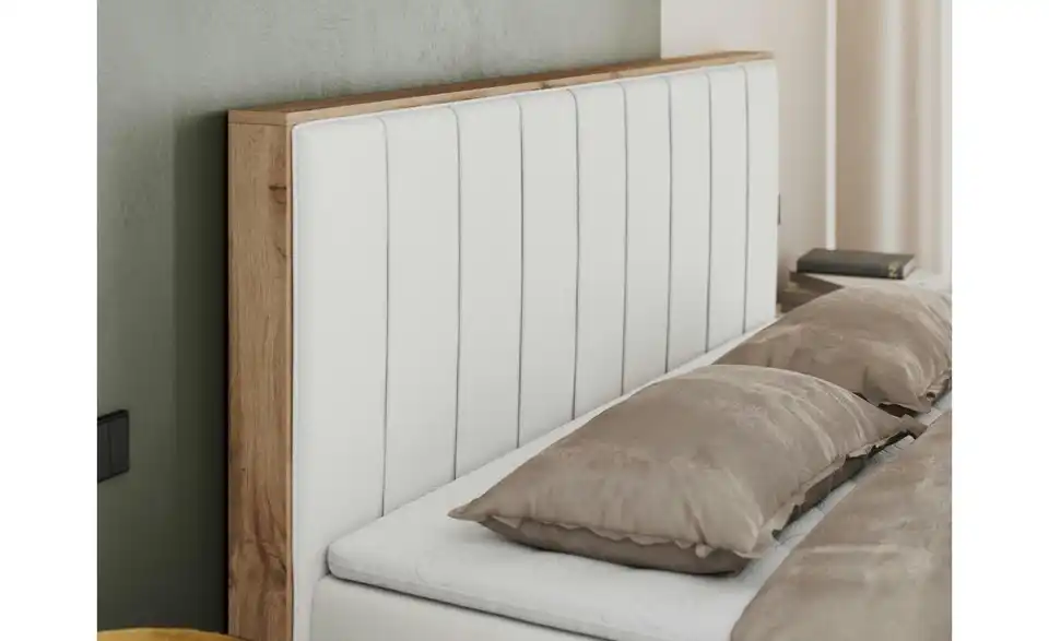 - Lieferumfang / mitgeliefertes ZubehörWeißes Polsterbett mit Bettkasten 140x200 cm
