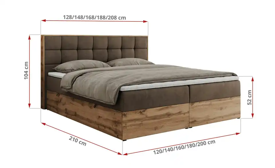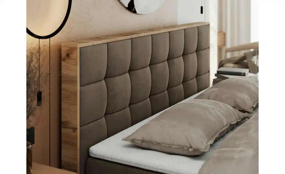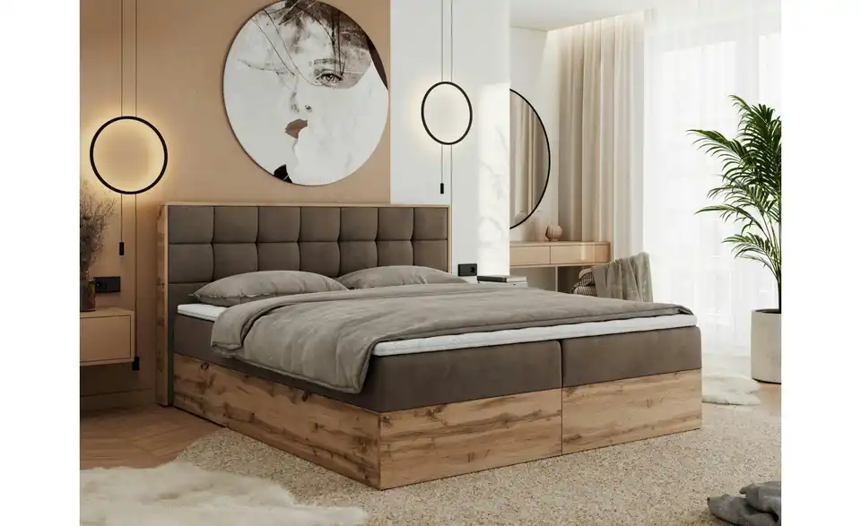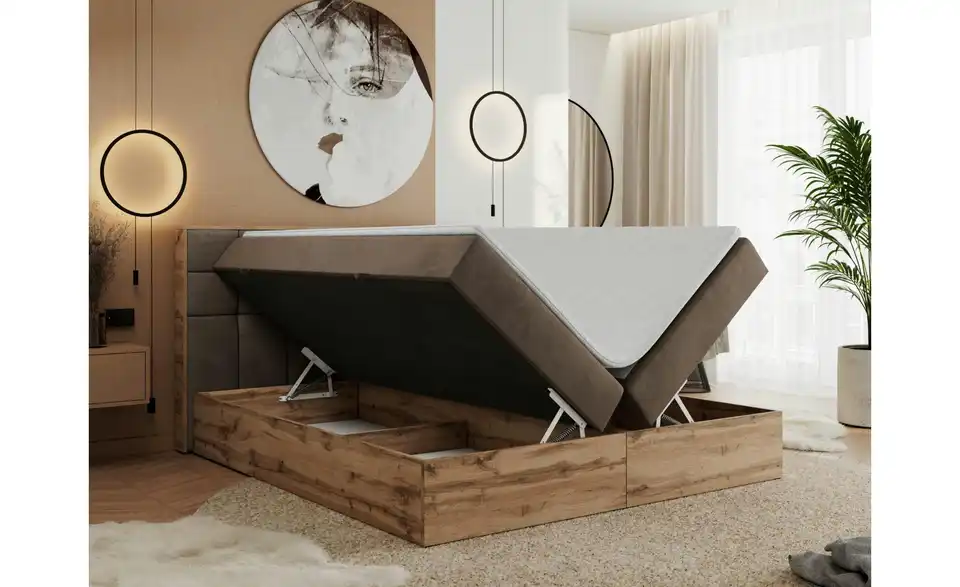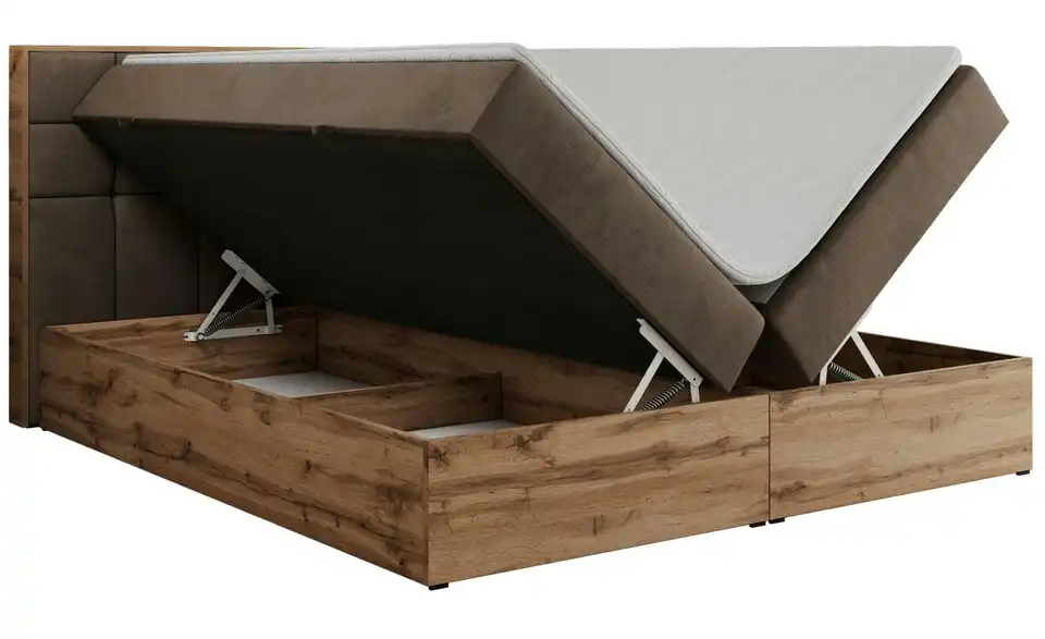 - Lieferumfang / mitgeliefertes ZubehörBronzefarbenes Polsterbett mit Bettkasten 180x200 cm