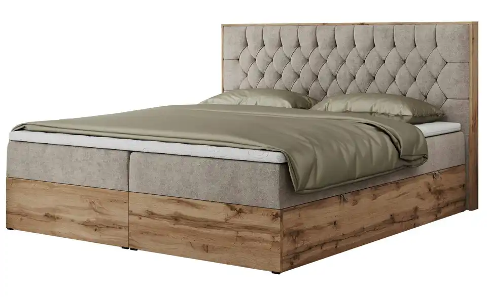 - Lieferumfang / mitgeliefertes ZubehörBeiges Polsterbett mit Bettkasten 200x200 cm