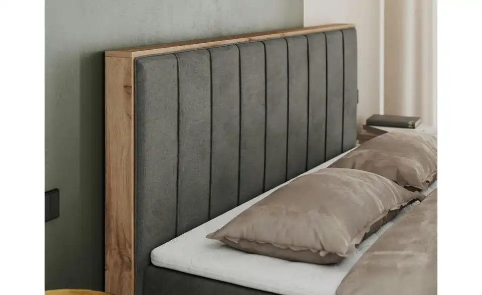 - Lieferumfang / mitgeliefertes ZubehörBasaltgraues Polsterbett mit Bettkasten 160x200 cm
