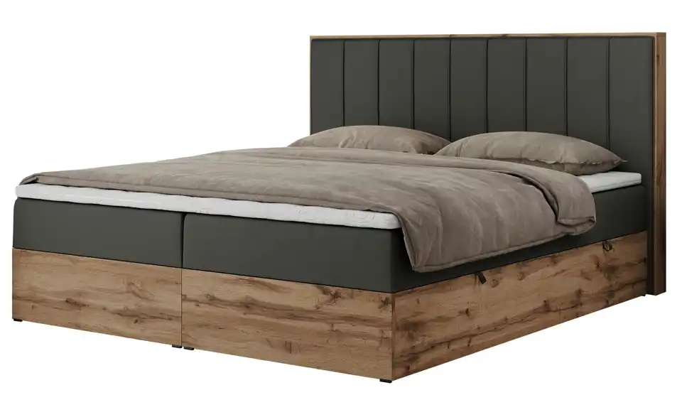 - Lieferumfang / mitgeliefertes ZubehörAnthrazitfarbenes Polsterbett mit Bettkasten 160x200 cm
