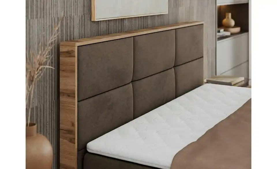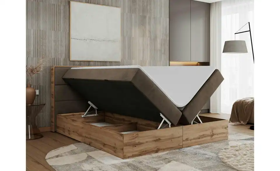- Lieferumfang / mitgeliefertes ZubehörBronzefarbenes Polsterbett mit Bettkasten 180x200 cm