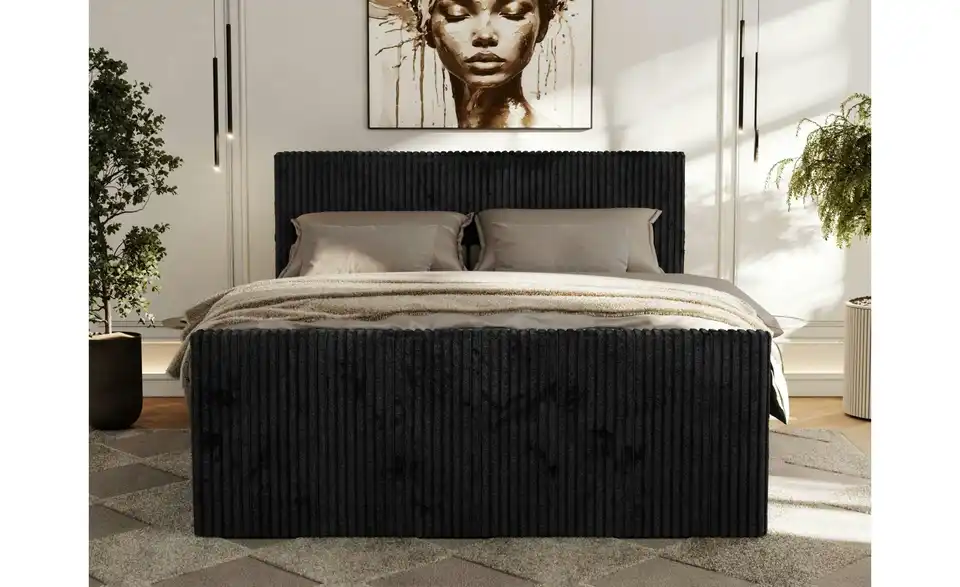 - Lieferumfang / mitgeliefertes ZubehörSchwarzes Polsterbett mit Bettkasten 200x200 cm