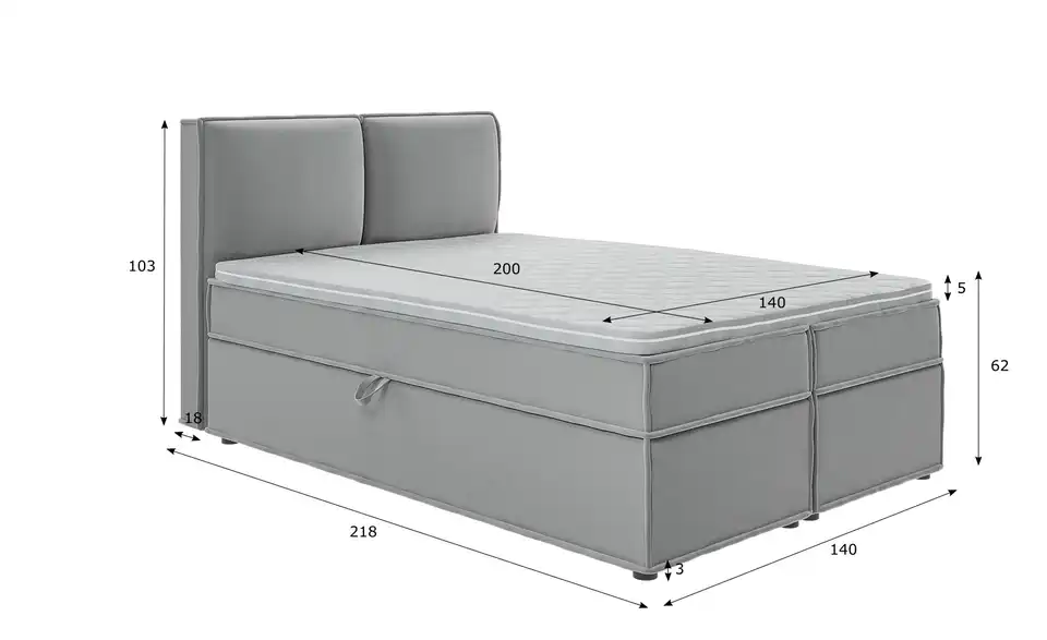- MontagehinweiseDer Kunde muss die beiden Teile zusammenbauen und den Kopfteil zusammen mit dem Bettkasten montieren.