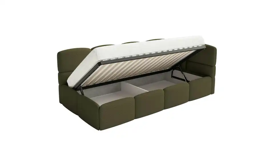 - Lieferumfang / mitgeliefertes ZubehörPolsterliege 90x200 mit Bettkasten Matratze und Rausfallschutz