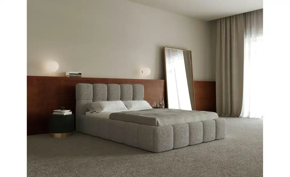- Lieferumfang / mitgeliefertes ZubehörGreiges Polsterbett mit Lattenrost 140x200 cm
