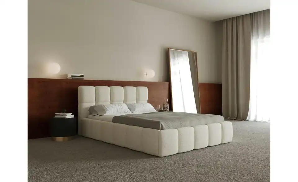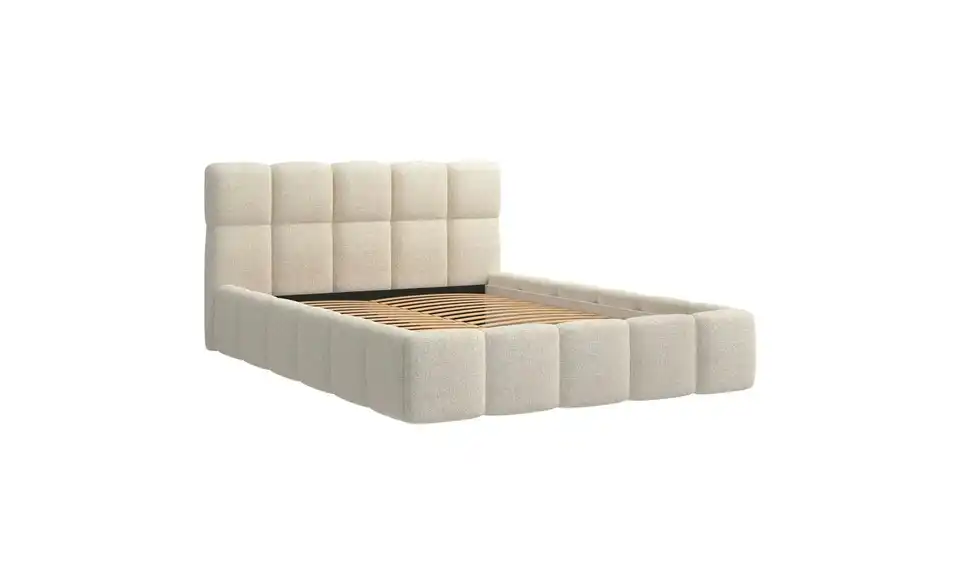- Lieferumfang / mitgeliefertes ZubehörHellbeiges Polsterbett mit Lattenrost 140x200 cm