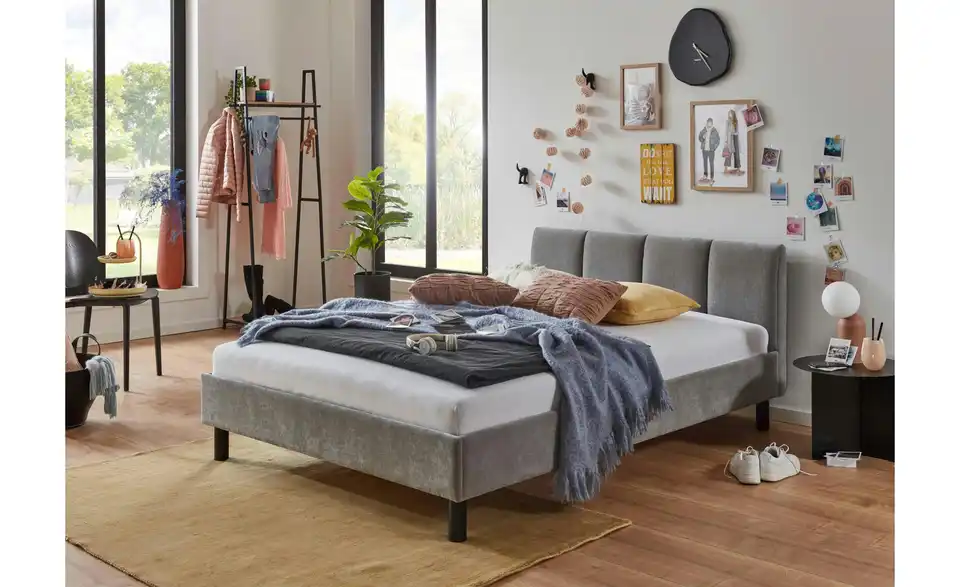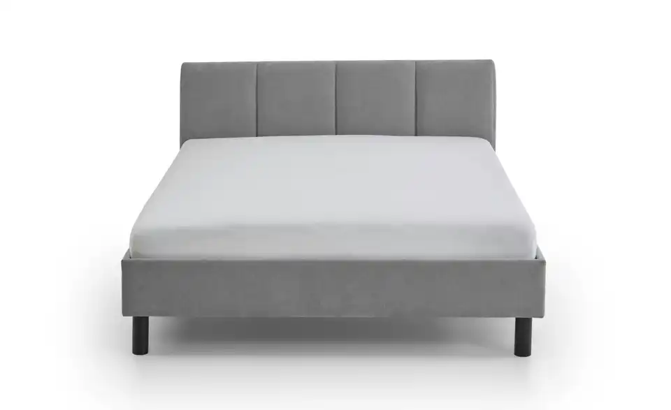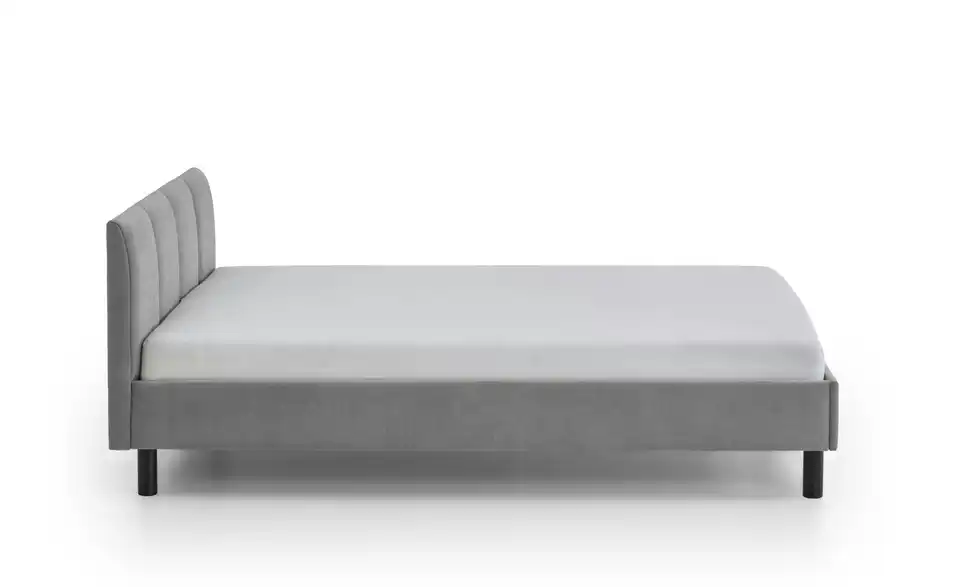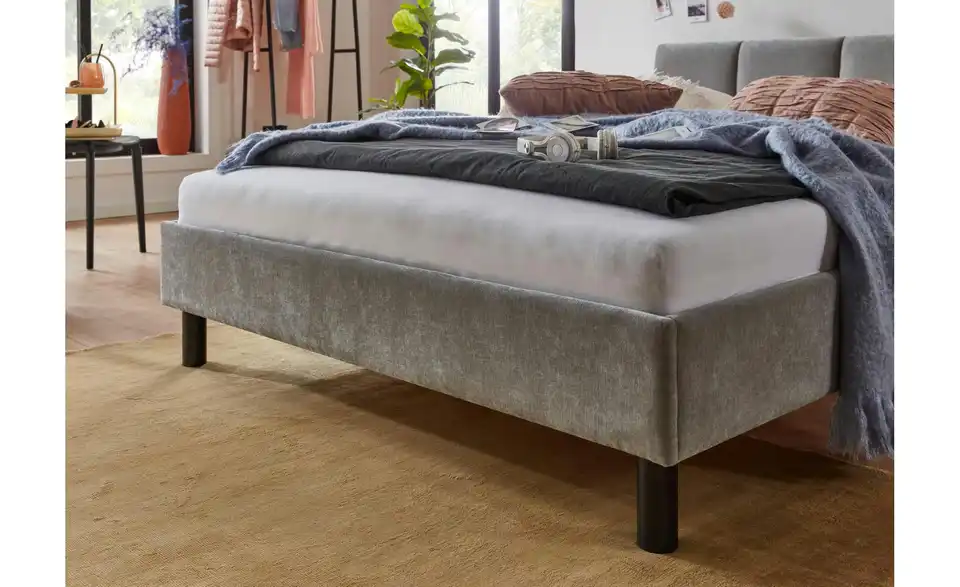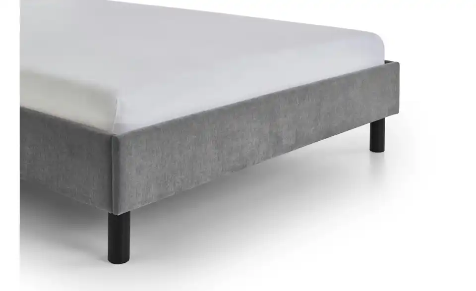 - Lieferumfang / mitgeliefertes ZubehörGraues Polsterbett 140x200 cm mit Holzfüßen, schwarz