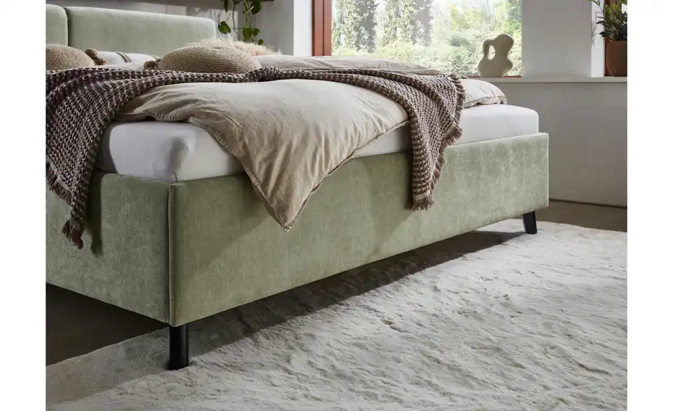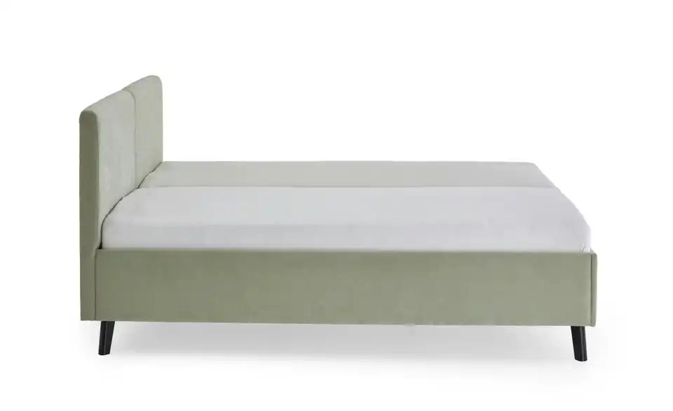 - Lieferumfang / mitgeliefertes ZubehörHellgrünes Polsterbett 160x200 cm mit Holzfüßen, schwarz