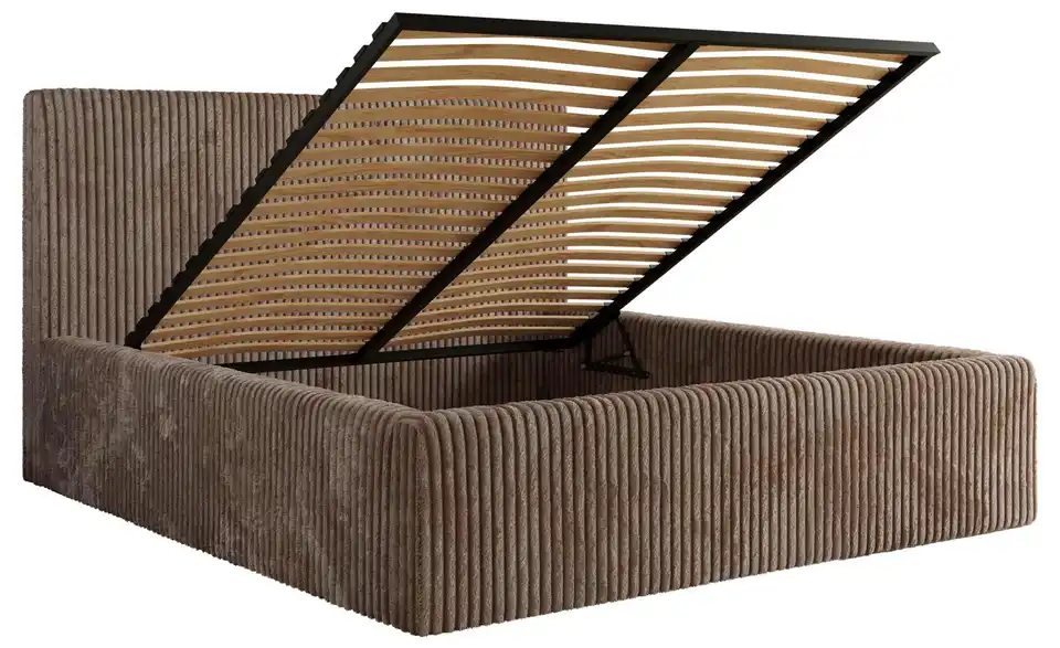 - Lieferumfang / mitgeliefertes ZubehörBraunes Polsterbett mit Bettkasten 140x200 cm