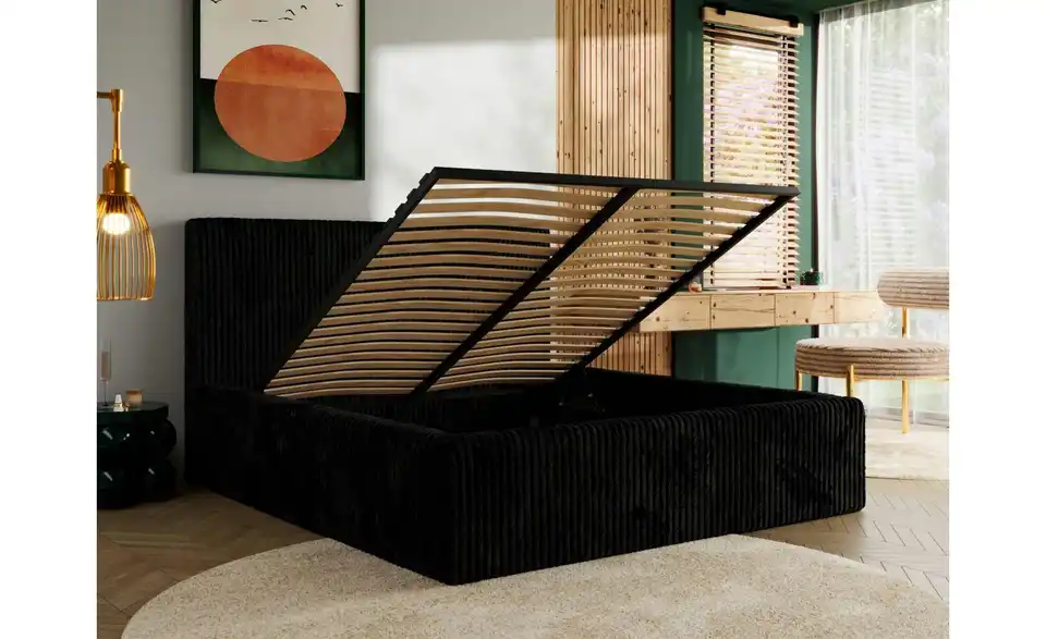 - Lieferumfang / mitgeliefertes ZubehörSchwarzes Polsterbett mit Bettkasten 140x200 cm