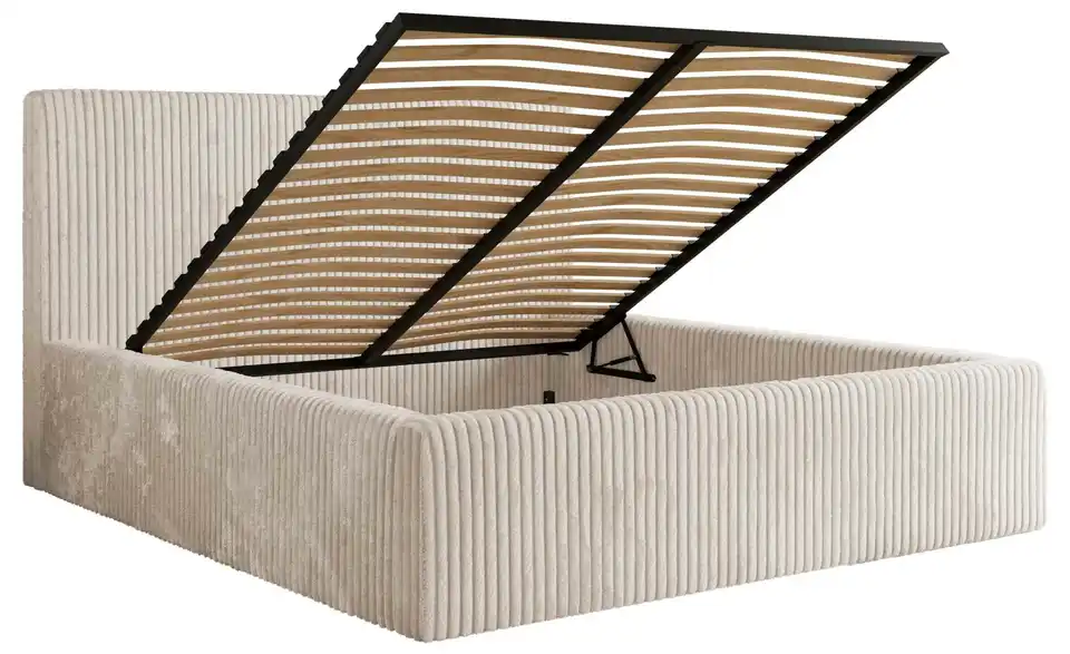 - Lieferumfang / mitgeliefertes ZubehörBeiges Polsterbett mit Bettkasten 140x200 cm