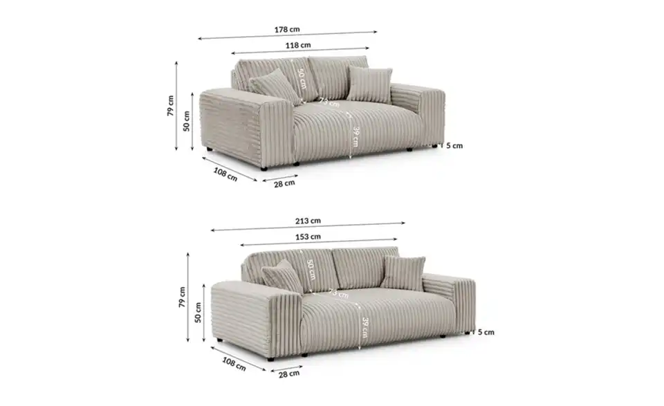 - Sofa 2-sitzig (BxHxT)178x108x79