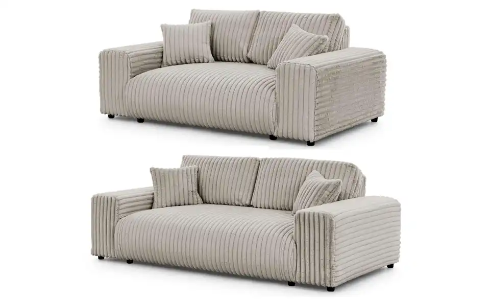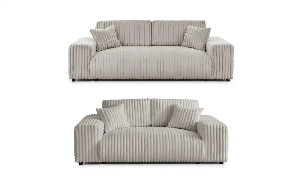 - Lieferumfang / mitgeliefertes Zubehör1 x 3-Sitzer Sofa, 1 x Sessel, 4 x Rückenkissen, 4 x Zierkissen