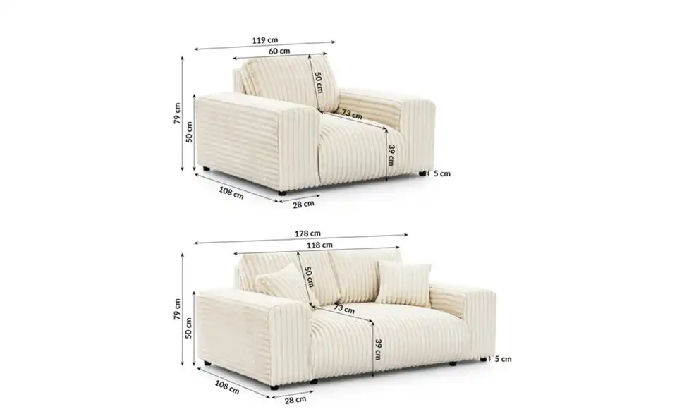 - Lieferumfang / mitgeliefertes Zubehör1 x 2-Sitzer Sofa, 1 x Sessel