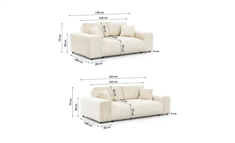 - Sofa 2-sitzig (BxHxT)178x108x79
