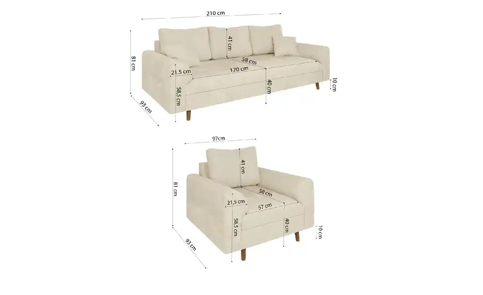 - Sofa 3-sitzig (BxHxT)210 x 93 x 81