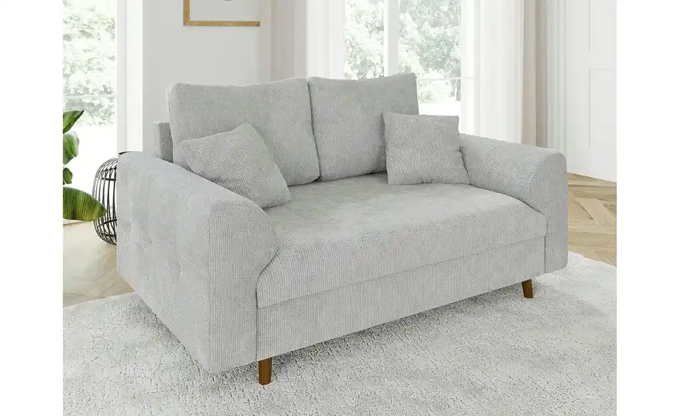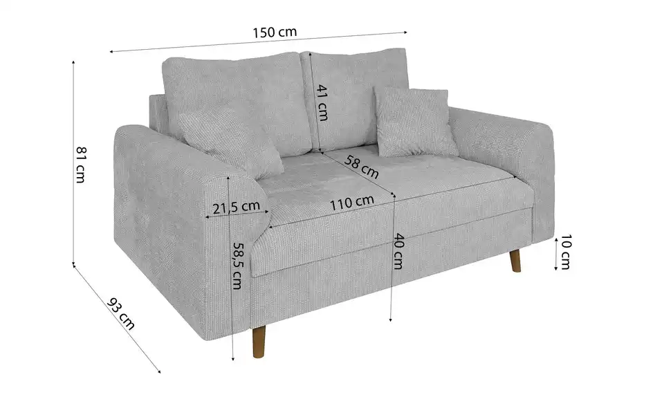 - Lieferumfang / mitgeliefertes ZubehörMontagematerial, 2-Sitzer Sofa, 2x Rückenkissen, 2x Zierkissen