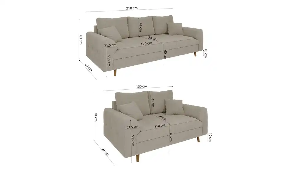 - Sofa 3-sitzig (BxHxT)210 x 93 x 81