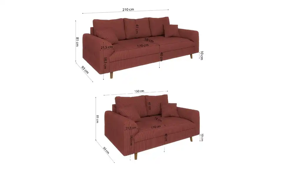 - Sofa 2-sitzig (BxHxT)150 x 93 x 81