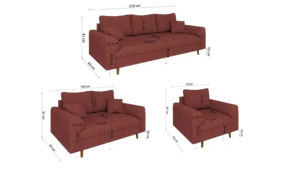 - Sofa 3-sitzig (BxHxT)210 x 93 x 81