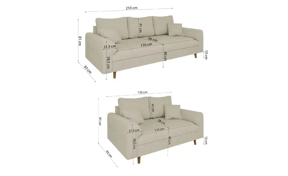 - Sofa 3-sitzig (BxHxT)210 x 93 x 81