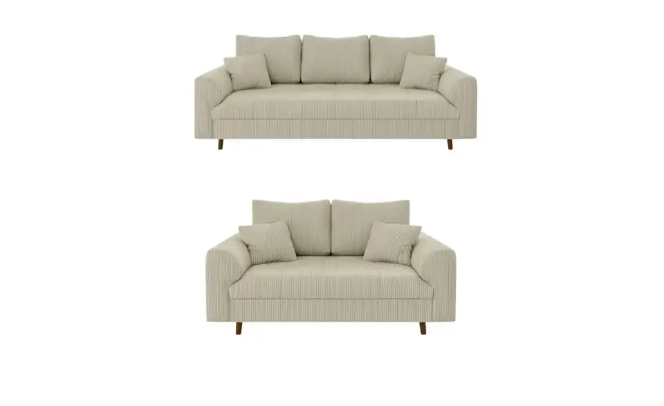 - Lieferumfang / mitgeliefertes Zubehör3-Sitzer Sofa, 2-Sitzer Sofa, Montagematerial, 4x Zierkissen