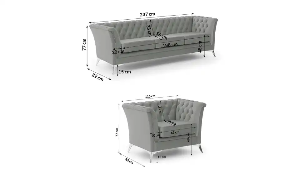- Lieferumfang / mitgeliefertes Zubehör1 x 3-Sitzer Sofa, Sessel, Montagematerial