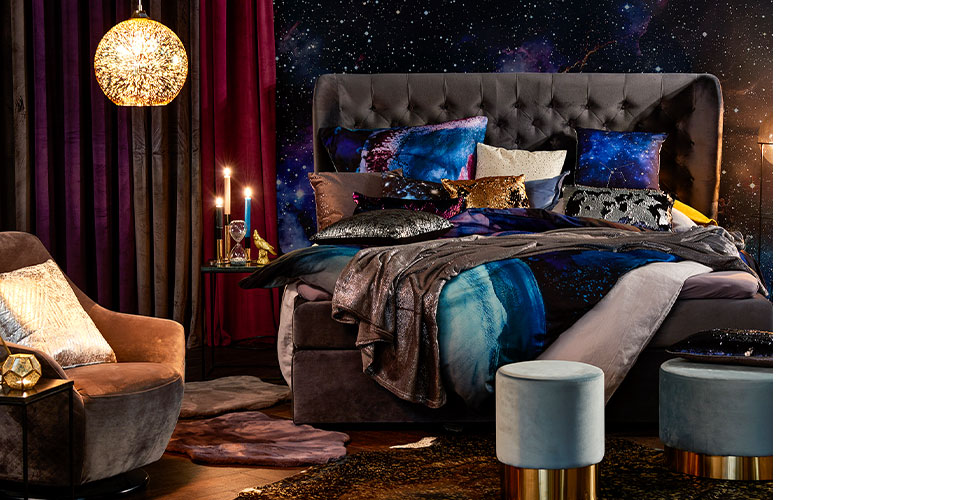 Mit ein wenig Mut zur Farbe Schwarz kann man sich einen ganz besonderen Charme in sein Schlafzimmer holen. Gerade in den kälteren Tagen, wollen wir uns einfach einkuscheln und die Jahreszeit im Warmen genießen. Es gibt viele Kombinationsmöglichkeiten, die Dein Schlafzimmer sowohl klassisch elegant, als auch romantisch wirken lassen. Kombiniere die Farbe Schwarz mit klassischen dunklen Holzmöbeln und anderen passenden Farbakzenten, die sich in Zierkissen, Bettwäsche, Kuscheldecken und anderen Textilien wieder finden.