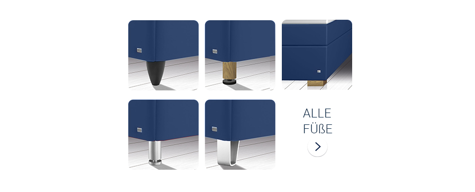 Wählen Deinen Fuß aus der Übersicht der Fuß- und Kufenformen. Mit der Design- oder Komforthöhe bestimmst Du Deine perfekte Liegehöhe.